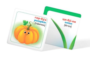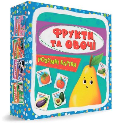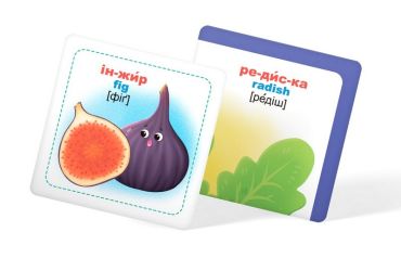 Перегляд таких карток дозволяє дитині швидко засвоїти назви фруктів та овочів, запам’ятати як вони пишуться, розвиває у нього інтелект і формує фотографічну пам’ять.