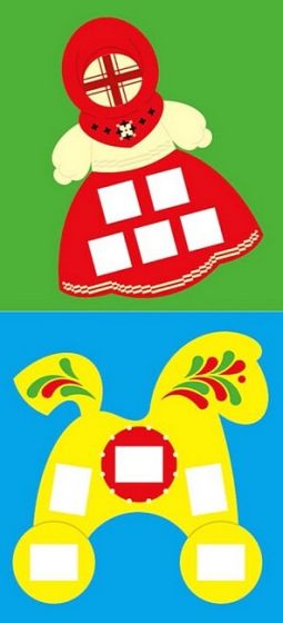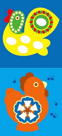 Створюємо мозаїку з наліпок! - Доповнюємо прості яскраві малюнки. - Клеїмо наліпки-фігурки. - Повторюємо кольори. - Знайомимося з рідною культурою змалечку, доповнюючи зображення українських іграшок: мотанки, свищика, забавкою з тіста…