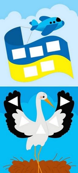 Створюємо мозаїку з наліпок! - Доповнюємо прості яскраві малюнки. - Клеїмо наліпки-фігурки. - Повторюємо кольори. - Знайомимося з рідною культурою змалечку, доповнюючи зображення символів України: калини, лелеки, паляниці…