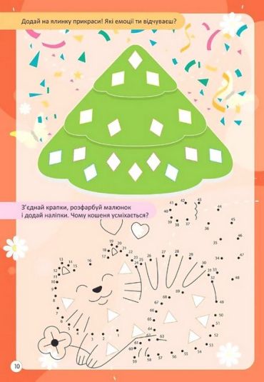 Книжка допоможе дитині зрозуміти свої емоції та почуття, порозумітися з друзями й батьками, а водночас виконати багато різноманітних цікавих завдань. Книга містить лабіринти, пошук відмінностей, пазли, розмальовки та багато іншого. Різнобарвні наліпки зроблять процес навчання веселим і простим.