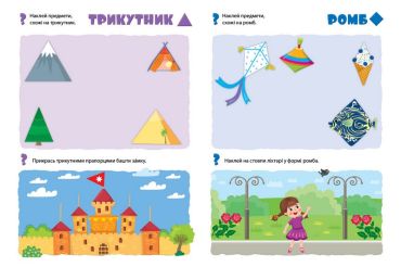 Ця книжка допоможе малюку вивчити чи повторити форми: на її сторінках дитина матиме змогу запам’ятати їхні назви й зображення, доповнити групи предметів, схожі за формою. Закріпити й перевірити вивчене допоможуть різноманітні завдання з наліпками.