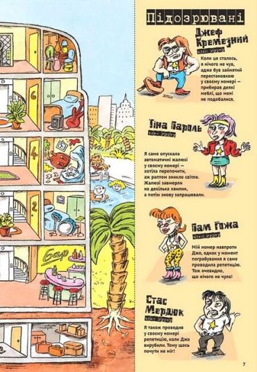 Книжка-квест з унікальною концепцією — 17 оригінальних розслідувань, кожне з яких займає окремий розворот. Приготуйтеся розім’яти свої детективні мізки. Які ж загадки чекають нас на кожному поверсі? Зухвала крадіжка з помешкання рок-співака, викрадення актриси театру, диверсія на полярній базі і навіть захоплення корчми! Рятуйте! Та, хоч як би страшно це видавалося, справжні детективи впораються з цими загадковими злочинами, якщо добряче все обмізкують. Можна навіть влаштовувати змагання!