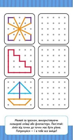 Кольорова книжка з цікавими завданнями, що допоможе у підготовці дитини до школи. На кожній сторінці видання представлено різноманітні розвиваючі завдання з письма, надано оригінальні творчі вправи, розмальовки. Яскраве оформлення та різноманіття завдань не дадуть малюку занудьгувати й допоможуть організувати корисне й цікаве дозвілля.