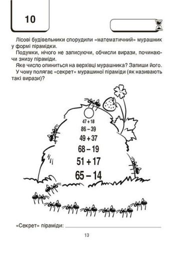 На сторінках цієї книжки на вас чекають 70 цікавих завдань, під час виконання яких майже не потрібно робити жодних записів. Міркувати та обчислювати слід подумки, не занотовуючи проміжних результатів, а запам’ятовуючи їх. Можливо, ви запитаєте: навіщо тримати все в голові, у вік комп’ютерних технологій? Цифри та числа супроводжують нас усюди: під час навчання та роботи, у побуті, під час розрахунків за покупки, приготування їжі тощо. Тож уміння обчислювати подумки — корисна навичка!