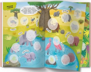 Розглядаючи яскраві картинки й читаїочи підписи до них, маліок буде знайомитися з новими словами й основами складоподілу, а наклеюючи наліпки, — поліпшувати дрібну моторику пальчиків. Пізнавайте світ та готуйтеся до школи разом із нами!