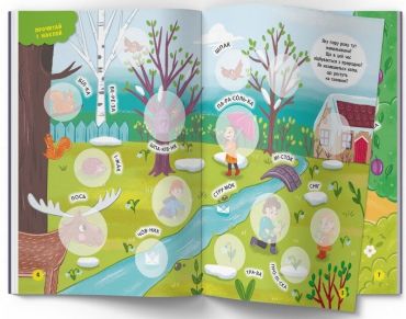 Розглядаючи яскраві картинки й читаїочи підписи до них, маліок буде знайомитися з новими словами й основами складоподілу, а наклеюючи наліпки, — поліпшувати дрібну моторику пальчиків. Пізнавайте світ та готуйтеся до школи разом із нами!