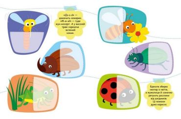 Книжка «Шукаємо половинки. Комахи» познайомить із багатьма цікавими комахами: метеликом і сонечком, коником і бджолою, світлячком і мурахою… Дитина зможе не лише весело провести час, а й дізнатися щось нове.
