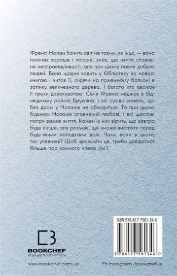 Френсі Нолан бачить світ не таким, як інші, — вона помічає хороше і погане, знає, що життя сповнене несправедливості, але при цьому повне добрих людей. Вона щодня ходить в бібліотеку за новою книгою і читає її, сидячи на пожежному балконі в затінку величезного дерева. І багато хто вважає її трохи дивакуватою. Сім’я Френсі мешкає в бідняцькому районі Брукліна, і всі сусіди знають, що без драм у Ноланів не обходиться. Та при цьому будинок Ноланів сповнений любові, і всі щасливі попри важке життя. Кожен із них вірить, що завтра буде ліпше, але розуміє, що зможе вистояти перед будь-якими нападками долі. Чому вони в цьому так упевнені? Щоб зрозуміти це, треба довідатися більше про кожного члена родини.