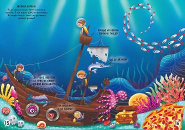 Морські глибини здавна приваблюють людей своїми таємницями, адже їх населяють різні і незвичайні жителі! Скоріше зазирни в книгу, щоб дізнатися про них найцікавіше! Фантазуй створюючи свій підводний світ! У цьому тобі допоможуть понад 300 меганаклейок! Використовуй як підказку вказані поряд з ними номери сторінок.