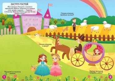 Кожен день принцеси Гвендолін та її подружок багатий на цікаві поді'і та пригоди. Хутчіш зазирни в книжку. Щоб разом з королівнами прогулятися зимовим лісом, побувати на балі-маскараді й покататися на єдинорогові! Фантазуй, вигадуючи власну історію про принцесу та її подружок. Тобі стануть у пригоді понад 300 меганаліпок. Використовуй як підказку зазначені поруч з ними номери сторінок.