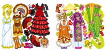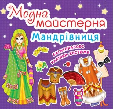 Багаторазові наліпки-костюми, представлені на сторінках видання, дозволять наряджати мандрівницю, створюючи все нові й нові образи.
