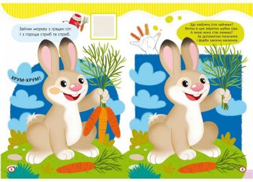 Це книжка для малюка, який ще не тримає в руках пензлика й олівця. З нею юний художник зможе створювати свої шедеври, просто вмочуючи пальчики у фарбу та торкаючись ними сторінок!