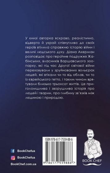 «Дружина доглядача зоопарку» - це не просто художній твір, а й справжній підручник з історії. В основі сюжету – реальна історія Варшавського зоопарку часів Другої світової війни. Власники зоопарку - подружжя Жабинських - ховали у вольєрах євреїв, виведених з гетто. Вони врятували близько трьохсот людей. Сміливість і відвага дружини доглядача зоопарку допомогла людям у ті надскладні воєнні дні. У книзі поєднано біль, страх, переживання із світлими почуттями. За мотивами роману було відзнято історичний військовий фільм, режисером якого стала Нікі Каро.