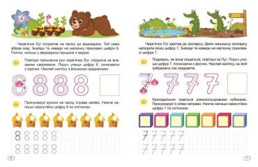 Також вона опанує лічбу та навчиться порівнювати за кількістю й виконувати дії додавання та віднімання, а завдання з наліпками додадуть навчанню елемент гри.