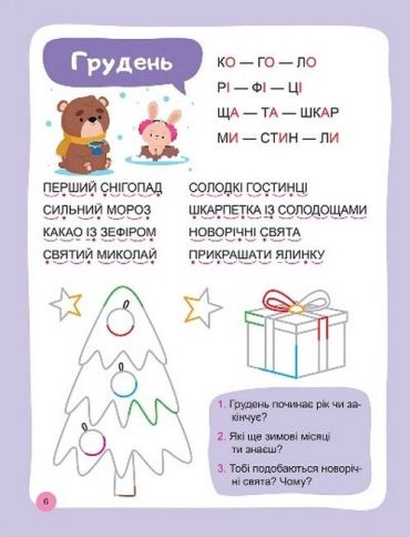 Навчання читанню та письму — цікаве та веселе заняття. Запропоновані в цій книзі завдання сформують навичку впевненого читання словосполучень. Для підготовки руки до письма на кожній сторінці надано контурні малюнки, які дитина зможе навести різнокольоровими олівцями чи фломастерами та розфарбувати. А для розвитку мовлення та засвоєння прочитаного запропоновано питання та завдання.