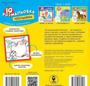 IQ розмальовка. Кольори – це поєднання гарного настрою, творчості та знань, необхідних для дошкільнят! Тут дитина познайомиться з розмаїттям кольорів, а також розвиватиме мислення, увагу та дрібну моторику ручок.