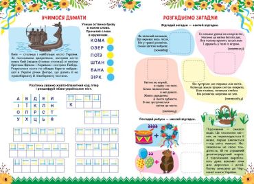 Любов до Батьківщини, як і до родини, з’являється і виховується змалечку. Захоплення красою рідної землі, насолода від милозвучності мови, повага до символів і пам’яток, турбота про ближнього, гордість за українське проростають з усвідомленням себе частинкою країни. Ця книжка допоможе в цьому й відкриє цікаві горизонти пізнання, запропонує незвичні завдання на українську тематику, розраховані на дітей від 7 років, — кросворди, загадки, ребуси, шифрограми, судоку, розмальовку, лабіринт, завдання для розвитку уваги, покращання дикції та тренування пам’яті.