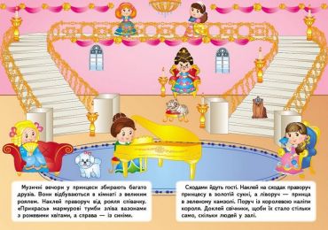 А починається ця розповідь так: «Який чудовий бал у палаці, кружляють пари... Як прекрасно звучать скрипки у скрипалів…» От тільки продовжувати і придумувати далі цю чарівну розповідь потрібно буде самим нашим маленьким читачкам!