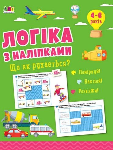 Тренуємо логіку та граємося наліпками. “Що як рухається?” — зошит із серії “Логіка з наліпками”. Дотепні та цікаві завдання допоможуть дитині розвинути кмітливість та мислення, познайомитися з транспортом, що оточує навколо — міркуючи, наклеюючи, розв’язуючи. На лівій стороні аркуша помічайте відповіді наліпками, а на правій — олівчиком. Також книжечка розвине дрібну моторику малюка та розважить майбутнього учня не на один вечір.