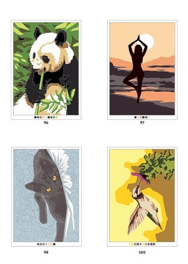 Кольорові головоломки — чудовий спосіб відволіктися від буденних справ, зосередившись на створенні власного художнього шедевра. Це ідеальний варіант для дозвілля! Від самого початку ти ще не знаєш, що закодовано на сторінці: Ейфелева вежа чи Колізей, велетенський слон чи тендітне цуценя спанієля. Але завдяки кольоровому коду кожен може легко розплутати це плетиво ліній. Щоб підібрати палітру, можна використовувати рекомендовані кольори або схожі відтінки.