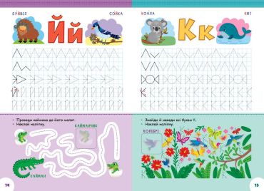 «Абетка з прописами та завданнями» — це яскраво ілюстрована тематична абетка, завдання якої спрямовані на вивчення букв, знайомство з новими словами, підготовку руки до письма і власне письмо літер. Видання допоможе малюкові вивчити букви українського алфавіту й навчитися їх писати. Щоб закріпити здобуті знання, дитина має виконати захопливі завдання з різними тваринами та птахами: знайти й навести букви на малюнках, провести хвостатих і пернатих героїв стежками й лабіринтами до цілі, знайти відмінності й допомогти їм дістатися до ласощів, а також виконати безліч інших вправ на логіку, лічбу та письмо. Граючись і виконуючи завдання за допомогою наліпок, малюк покращить координацію рухів рук, розвине дрібну моторику, уяву та логічне мислення, а робота з прописами навчить дитину концентрувати увагу та сформує впевнені графічні навички, потрібні для подальшого успішного навчання в школі.