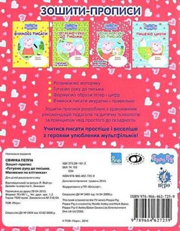 Зошит-пропис. Готуємо руку до письма. Малюємо по клітинках. Свинка Пеппа 41039