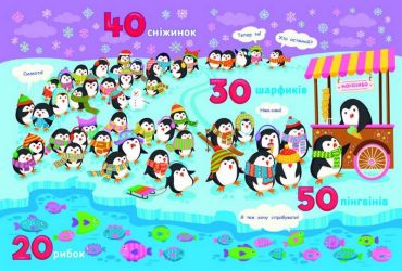 1 планета, 3 коти, 5 цуценят, 10 жуків, 30 пінгвінчиків, 50 метелеків, 100 бджілок... Лічити до 100 весело й цікаво, розглядаючи смішні малюнки. Кожна сторінка містить певну кількість персонажів і число, що її називає. Залишилося лише всіх відшукати і перелічити. Вчитися через гру — цікаво і просто. Ця книжка гарно підходить для першого знайомства дитини зі світом чисел та лічби.