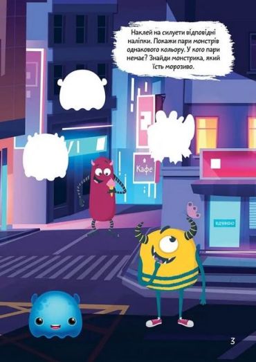 Книга створена для розвитку моторики, уваги, уяви, орієнтації у просторі й часі, а отже, для того, щоб дитина здобула й закріпила необхідні знання та опанувала основні навички для навчання у школі. Разом з кумедними монстриками діти залюбки стануть учасниками незвичайних пригод, а яскраві наліпки допоможуть зробити дозвілля ще кориснішим і цікавішим.