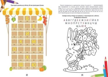 З цією книжкою навчання перетвориться на цікаву гру. Діти обожнюють малювати, отож залюбки розфарбують прості кумедні малюнки до української абетки. Разом з тим вивчать літери й потренуються писати їх у пропису. Цікавих завдань у книжці багато: мовні ігри, лабіринти, кросворди, ребуси… Завдання подарують дитині гарний настрій і корисні знання.