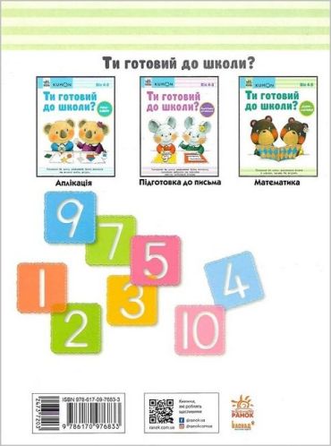 Кумон – методика індивідуального розвитку, за якою навчаються 4 млн дітлахів у 49 країнах. Книги «Ти готовий до школи?» допоможуть дитині опанувати базові навички, якими має володіти дитина, що йде до першого класу. Завдання поступово ускладнюються від сторінки до сторінки.