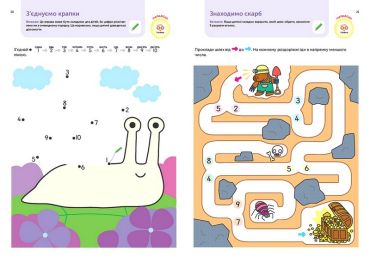 Але, розглядаючи малюнки, дитина також матиме втіху від спілкування з вами. На цьому етапі важливо плекати любов до навчання, тому сторінки цієї книжки необов’язково проходити у якійсь визначеній послідовності. Якщо маля виявляє інтерес до певної вправи, займайтеся, доки стане цікавості. Якщо ні —зробіть перерву чи перегорніть на іншу, цікавішу сторінку. У кожної дитини свої темпи розвитку, і, виконуючи завдання разом, як одна команда, ви робите важливий крок до навчання з насолодою.