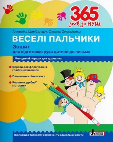 Робочий зошит «Веселi пальчики» призначено для підготовки руки дитини до письма. Зміст зошита вiдповiдає сучасним вимогам щодо реалiзацiї принципу наступностi мiж дошкiльною пiдготовкою та шкiльним навчанням. Вiн має iнновацiйний характер, що виявляється у поєднаннi дидактичного та органiзацiйного компонентiв побудови заняття — вiд вправ-розминок (пальчикова гiмнастика, виготовлення виробiв iз дрiбних деталей, гра з мотузкою), завдань на обведення пунктирних малюнкiв, домальовування, штрихування до ознайомлення з графiчним зображенням букв шляхом розпiзнавання та написання їх елементiв за зразком.