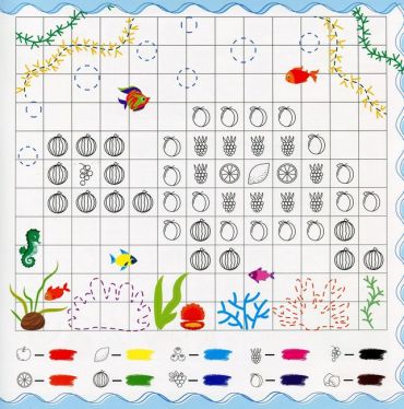 Видання «Мавпеня» із серії «Збери мозаїку» допоможе дітям весело, творчо та з користю провести час! У книжці 660 наліпок-квадратиків, за допомогою яких можна зібрати 9 різних об’єктів за підказками. Для цього малечі потрібно зіставити зображення фруктів на схемі з кольорами наліпок, вибрати потрібні наліпки та наклеїти їх у відповідні місця. Зібравши мозаїки, дитина креативно доповнить картинки, навівши по пунктиру та розфарбувавши окремі елементи. Готові мозаїки стануть чудовим подарунком для рідних і друзів або яскравою прикрасою кімнати. Робота з книжкою допоможе дитині розвинути творчі здібності, дрібну моторику, посидючість, увагу й акуратність.