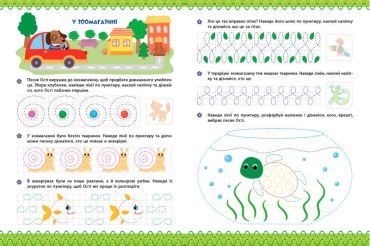 Прописи складаються із захопливих історій про пригоди тварин, які потрібно доповнити спіральками, зигзагами, фігурами та наліпками, а також навести по пунктиру та розфарбувати окремі предмети. Таким чином малюк стане активним учасником цікавої гри, захопливих пригод і неймовірних подорожей, а також розвине графічні навички, мислення та мовлення.