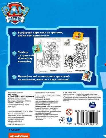 Розмальовка з наклейками. TM Paw Patrol (синя) 41296