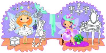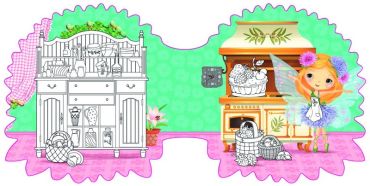 Запрошую тебе в чарiвний свiт, де я i мої подружки мешкаємо в маленьких будиночках-квiточках. Розфарбуй їх та прикрась за допомогою барвистих налiпок. Не забудь i про нас: добери яскравi кольори для нашого вбрання.