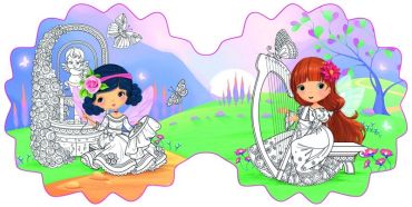 Запрошую тебе в чарiвний свiт, де я i мої подружки мешкаємо в маленьких будиночках-квiточках. Розфарбуй їх та прикрась за допомогою барвистих налiпок. Не забудь i про нас: добери яскравi кольори для нашого вбрання.