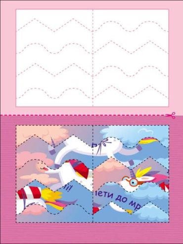 Пазли-розрізалки Єдиноріжки АРТ. З вирізаних пазлів складаємо яскраві картинки. А на кожному звороті є бонус — картинка для розфарбовування.