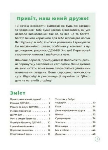 Дитина з розвиненим логічним мисленням вирізняється з-поміж інших. Вона легко вчиться, знаходить різні шляхи розв’язання задач, уміє обґрунтовувати свою думку. Та й взагалі, усе, що відбувається довкола неї,— цікаве й зрозуміле! Нумо розвивати логічне мислення дитини разом із родиною ДЗУМІВ, які живуть у сучасному світі поруч із такими незвичними родичами як: Комп-дідусь, Бабуся Флешка, Дядько Коптер, Тітка Камера та іншими друзями-гаджетами.