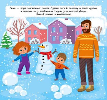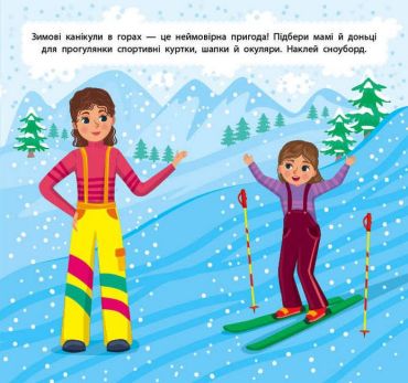 Разом із цією книжкою дитина відчує себе справжнім стилістом і зможе за допомогою наліпок утілити в життя своє бачення стильного й неповторного образу. На сторінках книжки малюк підбере відповідний одяг для кінної та велосипедної прогулянок, створить зручні й модні літні образи, укомплектує теплі й стильні осінні та зимові костюми для розваг і занять спортом, одягне родину для весняного пікніка, а малечу — для перегонів на картингу.