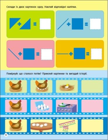 Розвивайте логічне мислення з улюбленим заняттям дітей. «Логіка» — стікербук з ігровими вправами, що має понад 50 наліпок. Для того, щоб закінчити малюнок, дитині потрібно відповісти на питання. А потім приклеїти наліпки за сюжетом. Так дитина вивчає правила розподілу і поєднання, досліджує спільні й відмінні ознаки, формує логічне мислення, розвиває увагу, тренується орієнтуватися у просторі й сприймати на слух інформацію.