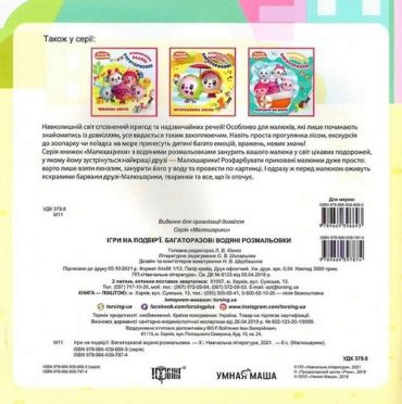 Серія книжок «Малюшарики» з водяними розмальовками занурить вашого малюка у світ цікавих подорожей, у якому йому зустрінуться найкращі друзі - Малюшарики! Розфарбувати приховані малюнки дуже просто: варто лише взяти пензлик, занурити його у воду та провести по картинці. | одразу ж перед малюком оживуть яскравими барвами друзі-Малюшарики, тваринки та все, що їх оточує.