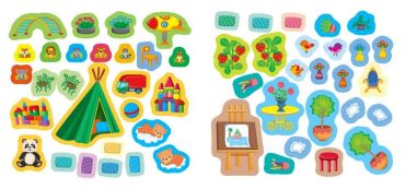 Разом із цією книжкою дитина відчує себе справжнім декоратором і зможе за допомогою наліпок втілити в життя своє бачення дизайну дитячого садочка. На сторінках книжки малюк облаштує майданчик, розвісить наліпки тваринок на шафи в роздягальні, розставить меблі в їдальні й актовому залі, розмістить подушки в спальні та приладдя в басейні, задекорує кімнату творчості й живий куточок, оздобить усе квітами та дитячими іграшками.