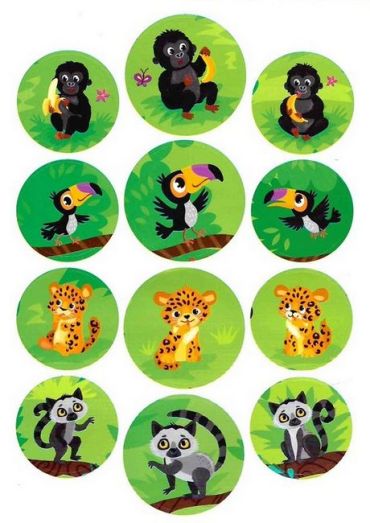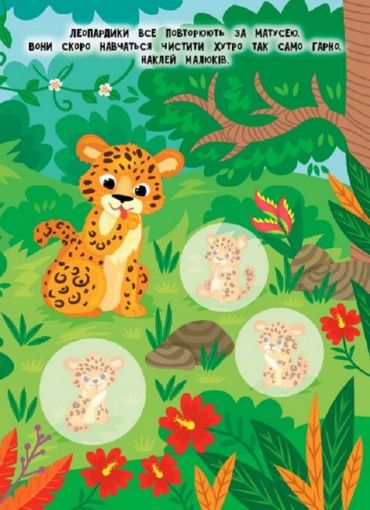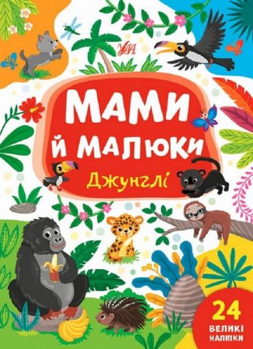 Ця книжка познайомить дітей з тваринами джунглів та їхніми дитинчатами. Вона допоможе запам’ятати їхні назви та дізнатися, що вони люблять робити. Великі наліпки урізноманітнять пізнавальний процес, перетворивши його на цікаву гру. Книжка допоможе розширити кругозір малюка й розвинути дрібну моторику пальців рук.