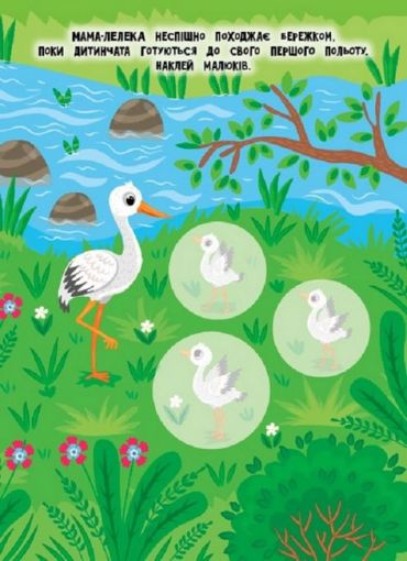 Ця книжка познайомить дітей з мешканцями річок й озер та їхніми дитинчатами. Вона допоможе запам’ятати їхні назви та дізнатися, що вони люблять робити. Великі наліпки урізноманітнять пізнавальний процес, перетворивши його на цікаву гру. Книжка допоможе розширити кругозір малюка й розвинути дрібну моторику пальців рук.