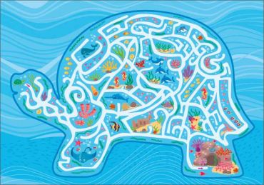 Малюк матиме можливість пройти захопливий лабіринт у вигляді черепахи, а також вирізати рамочку для фото та змайструвати фігури мешканців моря у форматі 2D. Яскраві ілюстрації та наліпки зроблять роботу більш цікавою.