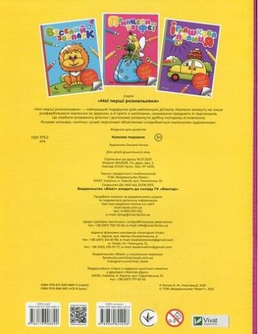 "Мої перші розмальовки"-найкращий подарунок для найменших дітлахів. Малюки зможуть не лише розфарбувати малюнки за зразком, а й грати з наліпками, називаючи предмети й персонажів. Це неабияк розважить діточок і допоможе розвинути дрібну моторику й мовлення. Яскраві кольори,наліпки,цікаві персонажі обов'язково сподобаються маленьким художникам.
