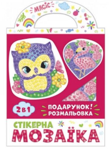 Набір для творчості 2 в одному! Цей чудовий набір стікерової мозаїки створений спеціально для тих, хто у захваті від гарненьких тваринок! Набір сприяє розвитку дрібної моторики і творчих навичок. Створювати зображення дитині необхідно за номерами, кожному з яких відповідає певний колір наліпок. Цими стікерами та наклейками також можна прикрасити інші поверхні. Розмальовка в подарунок!
