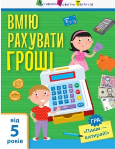 Як порахувати вартість покупки і перевірити, чи правильно дали решту? Із купою таких запитань допоможе розібратися зошит "Я вмію рахувати гроші". У ньомує зрозумілі пояснення та багато практичних вправ, а ще — по дві гри "Пиши — витирай", за допомогою яких дитина відпрацює отримані знання.