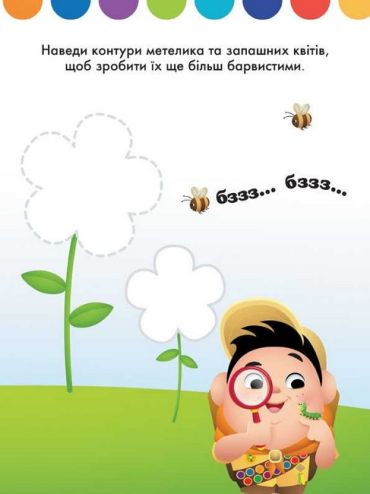 Перша розмальовка для найменших. Разом з героями популярних мультфільмів малюк порине у кольоровий світ пригод. Яскраві наліпки обовязково привернуть увагу непосиди.